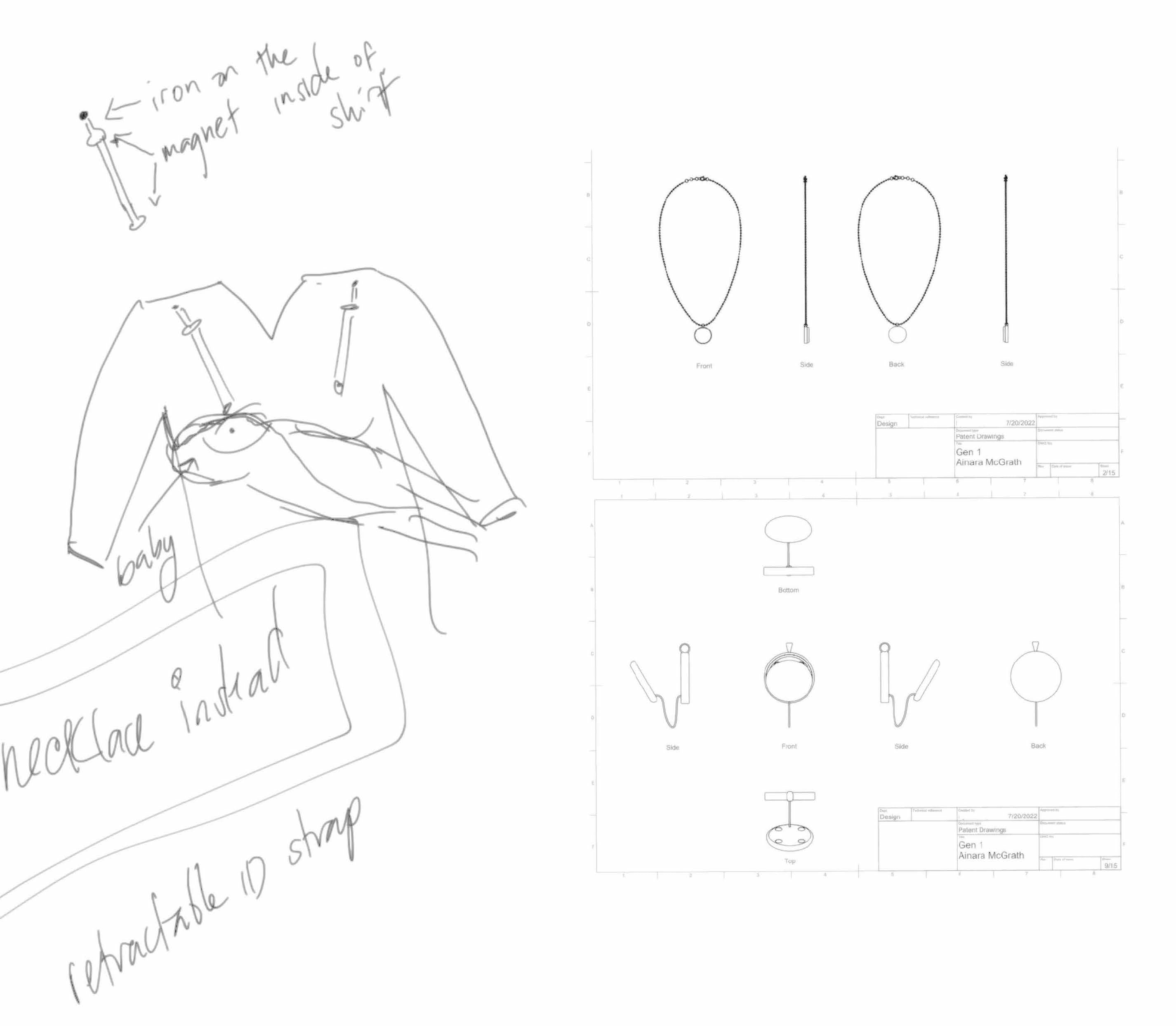 That is how this necklace was born. Practical jewelry designed not only to keep clothing away from the baby’s face or pump, but also serves as subtle encouragement, empowering the mother to feel confident in her evolving identity.